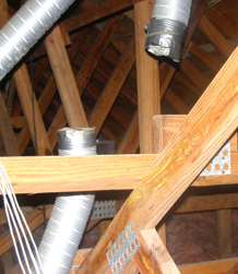 Install R-38 of Owens Corning ProPink L77 formaldehyde-free blow-in fiberglass (12”) covering ducts where possible.